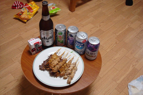 晚餐去買了ㄧ些酒和餅乾還有便宜到不行的串燒來吃