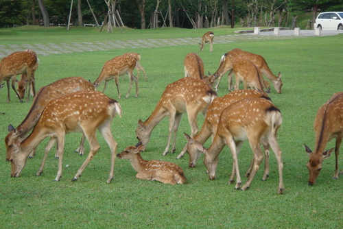 最後在奈良公園跟正在曬日光浴的鹿們照了相之後打道回府