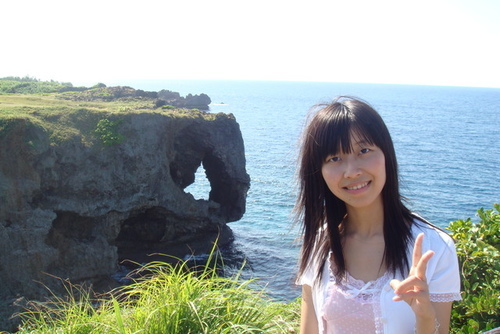 坐到飯店前一站在烈日下爬了十五分鐘的大上坡到了有名的風景區『万座毛』