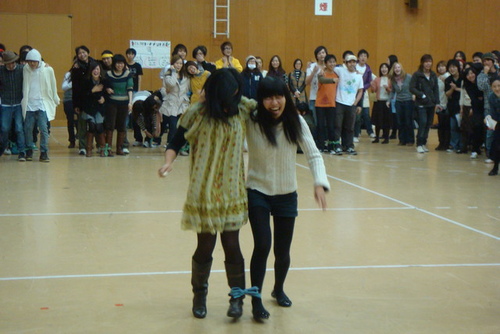 今年的團康遊戲從去年的射籃改成兩人三腳班際對抗