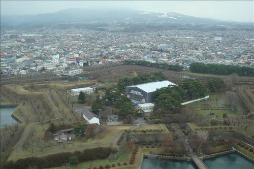 從展望台向下眺望可以看到昔日為了防禦外患所建造的五稜郭公園,