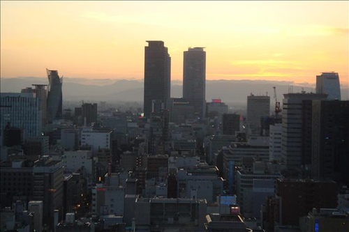 名古屋市區在一抹夕陽的襯托下似乎顯得與眾不同,