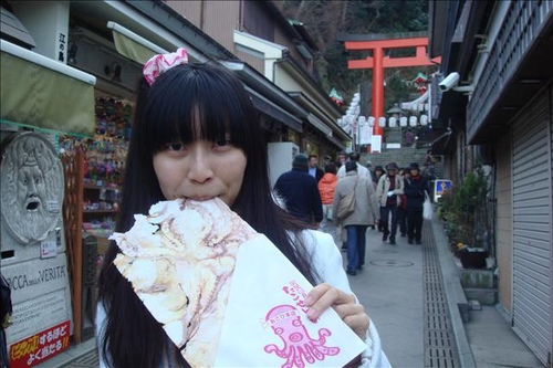 雖然沒吃到最想吃的烤蛤罵,但吃到用真的章魚去壓成的章魚仙貝也夠令人開心。