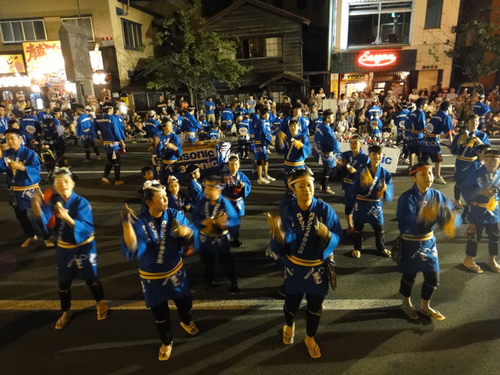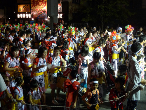囃子們吹著奏著ハネト跳著唱著眾人一起吆喝著,
