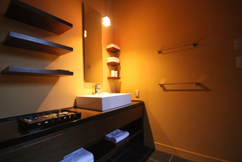 靠山的景觀房,是說在泡澡的時候可以看野鳥和森林,