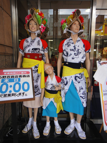 從車站步行至Hotel JAL City青森的途中都是出租或販賣ハネト套裝的攤子,