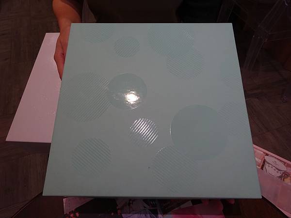 紙盒內部的霧面裝飾紙也是圓點