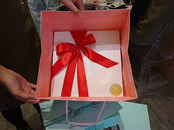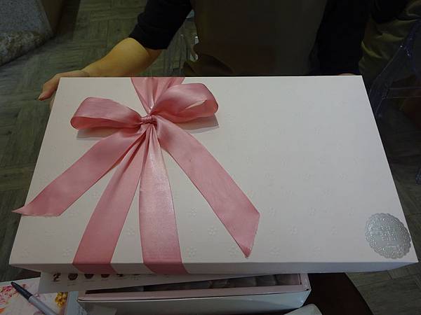 紙盒外部印有愛心印花,但因為是白底看不太清楚,優點是配甚麼顏色的緞帶都很搭