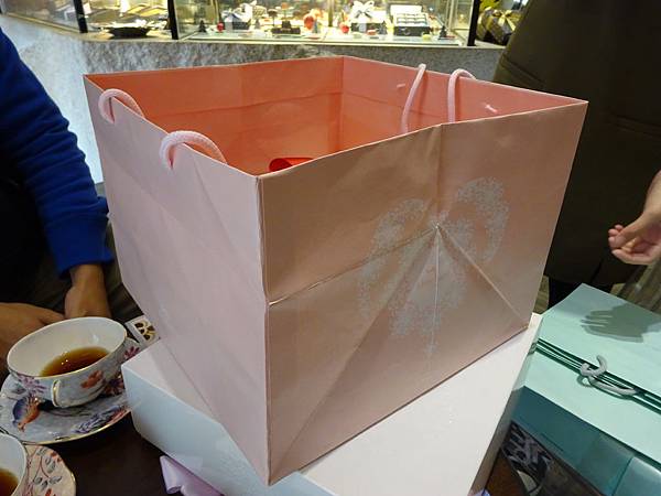一樣是粉紅色紙袋,內部印有小花圖案