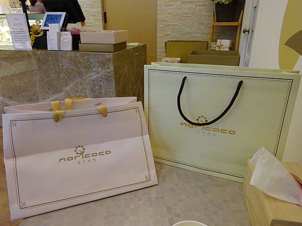紙袋有2種可以挑選,左邊的粉紅款禮盒可以平放,右邊的淡黃色款只能直立擺放