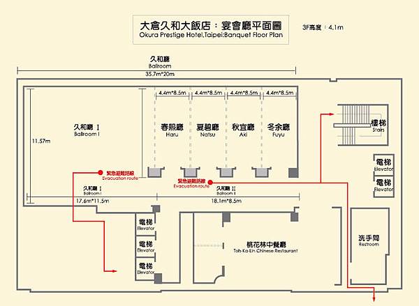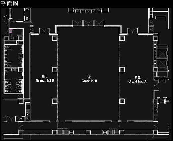 優點:宴會廳方正高挑無柱,只有一個宴會廳獨享整層樓空間。