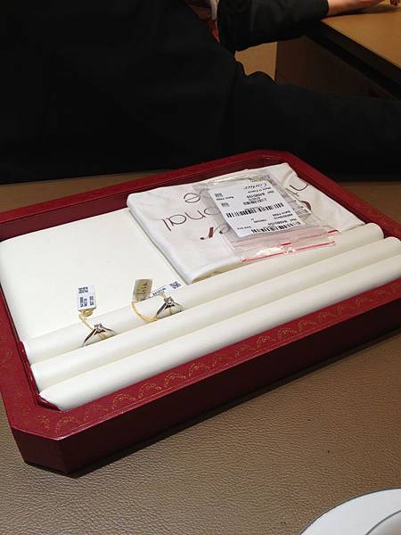 一週後回訪,服務人員先端上茶與巧克力,一開始先試戴品牌經典的四爪鑽戒。