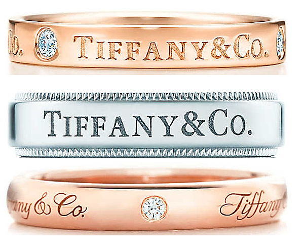 女戒(上) Tiffany & Co. 18K 玫瑰金鑲鑽戒指,3 毫米寬。