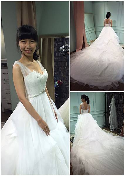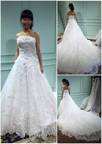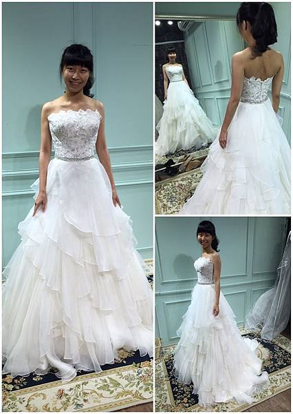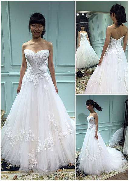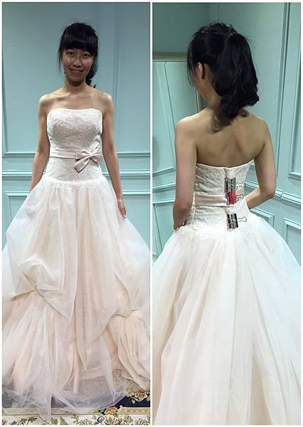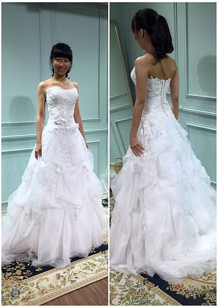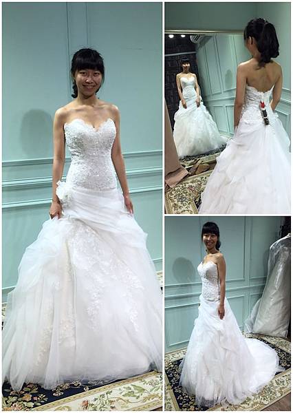 ⑪原本最想試的VERA WANG大蝴蝶款被訂走不能試穿,只好試這件花苞款,裙襬有點太複雜。
