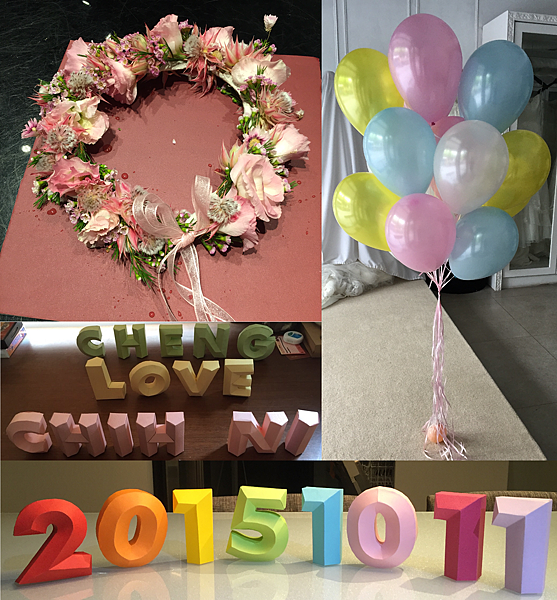 西敏會提供假花束當作道具,但最搶眼的還是做到手指要貼撒隆巴斯的立體字。