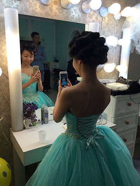 禮服本身顏色也非常飽和漂亮,但穿在身上簡直是讓我皮膚黑到發亮。
