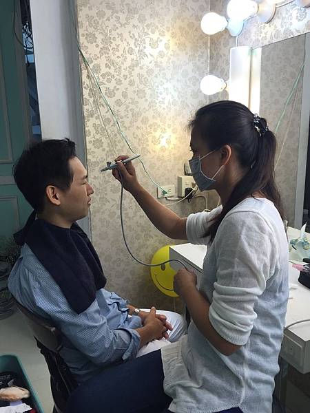 回到棚內吃完中餐後開始第二個造型的梳化,