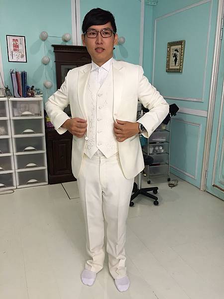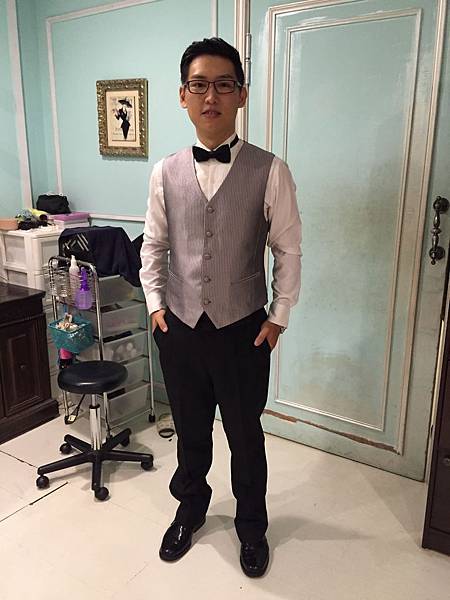 許先生梳了個他夢寐以求的油頭,黑西裝配上灰色背心和領結又是另一個風格。