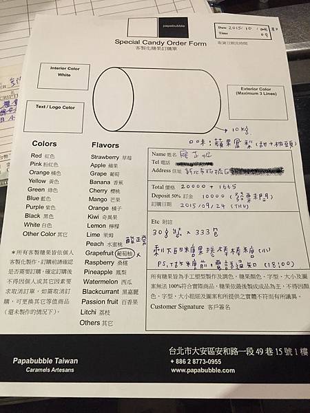 店家非常幫忙的在距離婚禮剩下不到三週的時間內把我們的糖果擠進排程中,