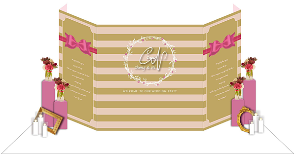 提案三 : 立體LOGO/立體蝴蝶結/白色地毯/花柱