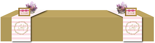 5. 收禮區佈置(桌旗/桌牌/花藝2盆/主題佈置物)