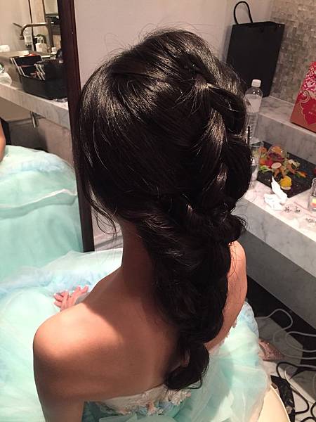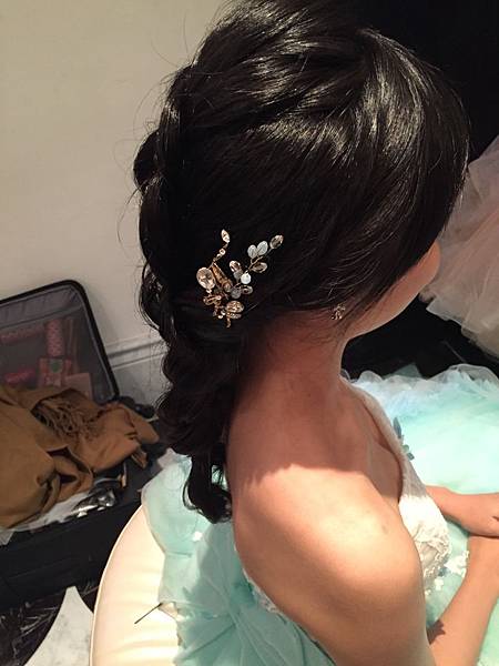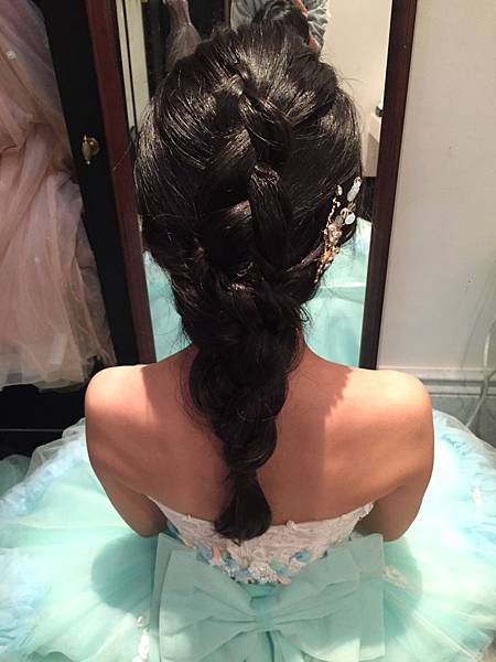 晚宴敬酒造型 (藍綠色禮服/魚骨式編髮)