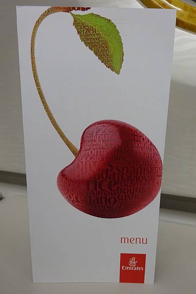 6小時的航程中會供應1正餐和1甜點,menu只有標示英文和阿拉伯文。