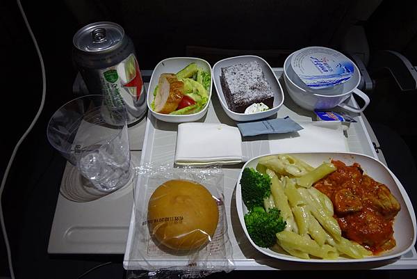 起飛後約莫1小時開始發送正餐,我們是一個普通餐和一個海鮮餐。