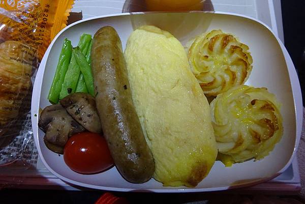 許先生的普通餐只有主餐改為煎蛋搭配雞肉香腸,其他都一樣。