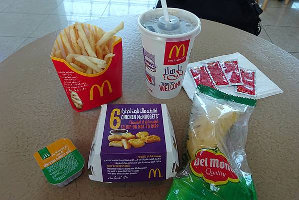 我們先拿著轉機四小時以上附贈的餐券到麥當勞兌換餐點,