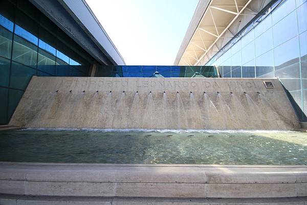 刻有義大利文機場名稱Aeroporto Leonardo da Vinci的水池,