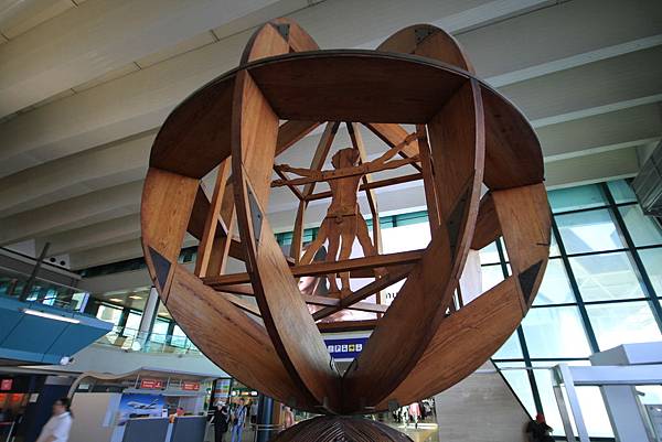 達文西機場裡擺放著達文西著名畫作Vitruvian Man的立體化作品,