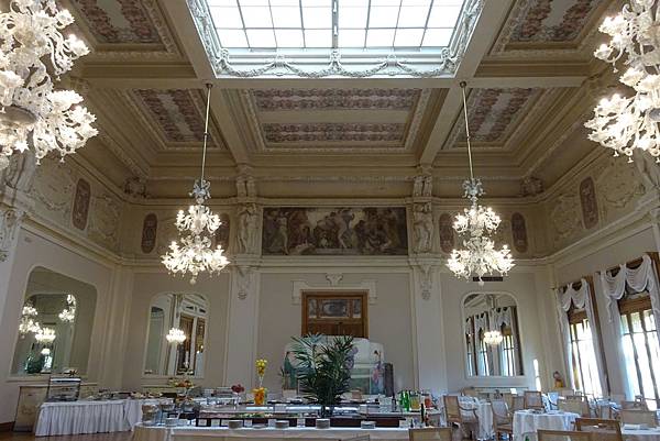 隔天早上在飯店餐廳用早餐
