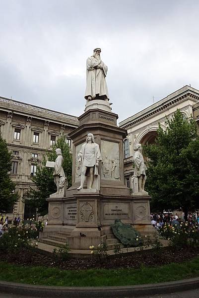 廣場中間豎立著達文西和其四個弟子的雕像。