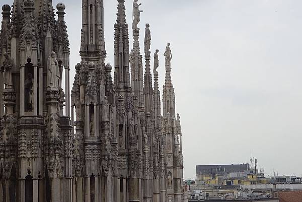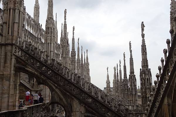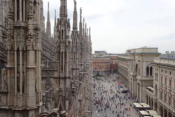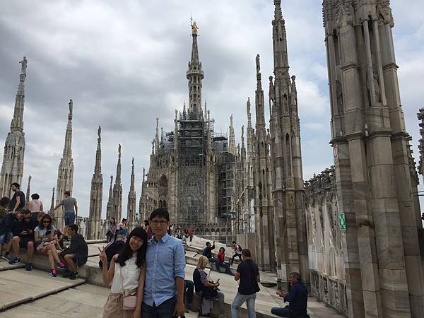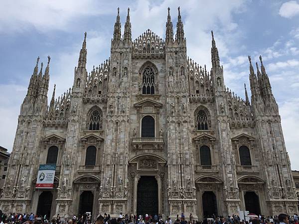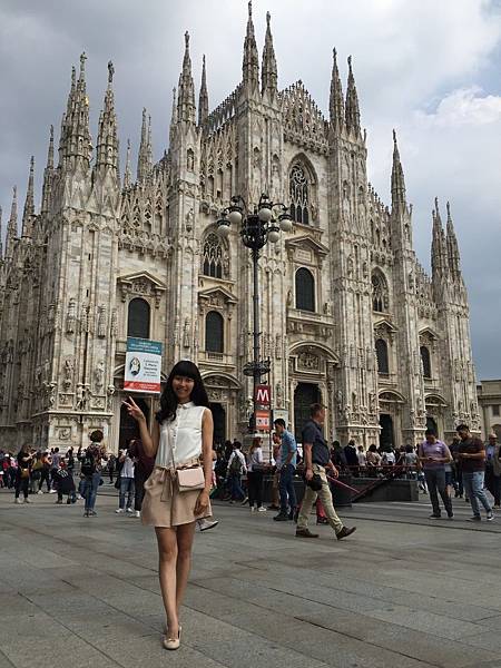 一踏出迴廊映入眼簾的是白色大理石砌成的米蘭主教座堂(Duomo di Milano),