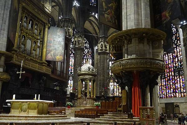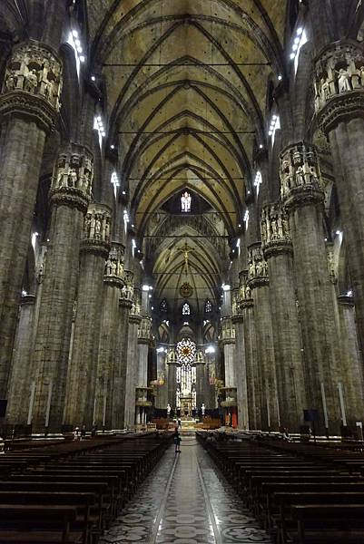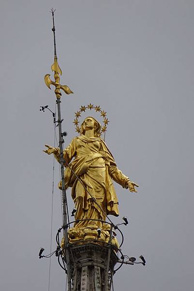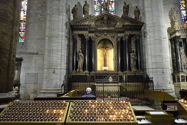 跟代表愛的聖母留下合影後,就下樓集合參觀米蘭大教堂內部。
