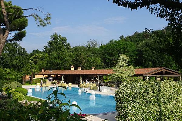 今天剛好有一場浪漫的婚禮舉辦在戶外泳池畔。