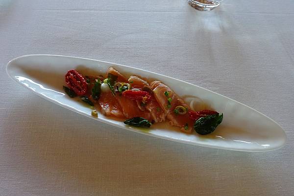 第二道冷盤是地中海風味香煎鮭魚,搭配著清爽的醬汁非常開胃。