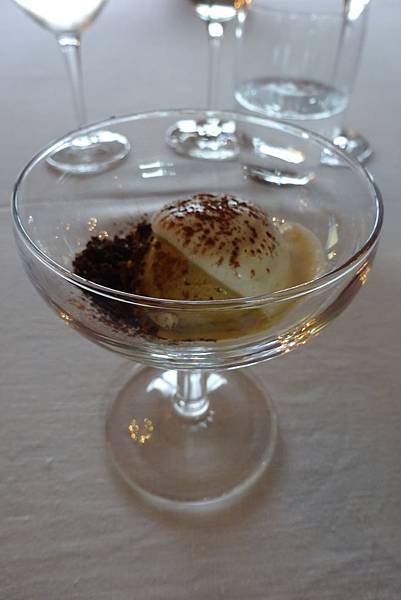 第一個甜點是咖啡口味冰淇淋佐巧克力碎片。