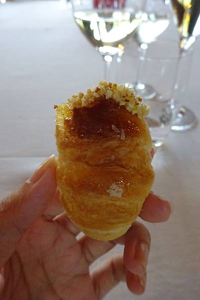 再來是由廚師在現場將一個個空心的麵包灌入卡士達醬,